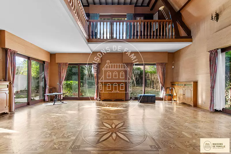 Maisons de Famille Immobilier, l'expert de la vente de Maisons dans l'ouest parisien. BOUGIVAL - A proximité des écoles et à 10 min à pieds de la gare nous vous présentons *Philippine*, cette belle et spacieuse demeure de 270m2 habitable et 409m2 au sol sur un terrain de 1366m2. La maison se compose de 3 niveaux : Au rez-de-chaussée, une entrée dessert un vaste séjour/salle à manger de plus de 90m2 avec accès direct sur le jardin, cuisine indépendante, chambre avec balcon, bureau, salle d'eau avec WC et un WC séparé. A l'étage, un palier dessert 4 chambres dont une avec balcon, 2 salle de bains; 2 terrasses supplémentaires et 2 WC. Au sous-sol, possibilité d'aménager un studio indépendant avec sa salle d'eau et WC, 2 caves, cave à vin, atelier, chaufferie et un grand garage. Beau jardin arboré à l'abri des regards. Idéalement située, au calme et baignée de lumière, vous serez séduits par les beaux volumes qu'offrent la maison. Contact direct : Antoine Duterque 07.62.44.80.08 Maisons de Famille - Agence Immobilière Bougival (3.39 % honoraires TTC à la charge de l'acquéreur.)
