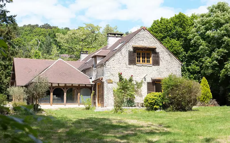 A Buno-Bonnevaux, à moins de 10 minutes de Milly-la-Forêt, très belle propriété en pierre d'une surface d'environ 270 m², sur terrain clos et arboré de 5 277 m². Au rez-de-chaussée, salon cathédrale de 70 m² (sol en pierre de bourgogne) avec immense cheminée ouvrant sur un espace piscine intérieure de 70 m², avec jacuzzi, accès terrasse, douche et WC. Au même niveau, grande cuisine de 35 m² donnant accès à deux terrasses, deux chambres de 15 et 22 m² environ, salle de bain et WC. Au 1er étage, espace mezzanine d'environ 15 m², deux suites réparties de chaque côté du salon, chacune de plus de 30 m², avec salle de bain et WC.