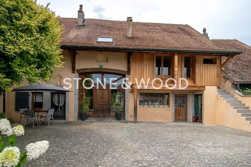 Dans le village préservé de Cornier, à quelques minutes de La Roche-sur-Foron, des commodités, de la gare et des principaux axes de circulation, se trouve cet ancien corps de ferme du XIXe siècle entièrement rénové, édifié sur une parcelle close de 1 861 m2. Développant 323 m2 utiles sur trois niveaux, le bien dispose également, en annexe, d'une grange à rénover d'environ 215 m2 utiles.