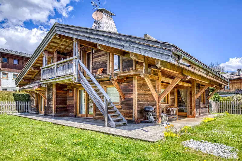 MEGEVE, SUPERBE CHALET DE GRAND CONFORT REF. 7395, établi dans un environnement résidentiel, à 1.5 km environ du centre du village. Séjour sous toiture avec cheminée, espace repas et cuisine ouverte équipée, le tout donnant sur terrasse plein Sud et escalier accédant au jardin, toilettes invités, quatre chambres en-suite avec salle de bains ou salle d'eau/WC, espace détente avec sauna, hammam, jacuzzi, salle de douche, toilettes, piscine intérieure, ski-room, home cinéma, local piscine, local technique, buanderie, cellier et cave à vins. Surface habitable 270 m² + 46 m² d'autres surfaces, sur un terrain de 999 m².