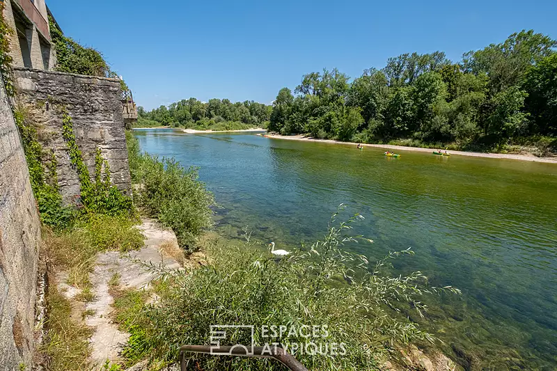 Nichée au bord de l'Ain, à moins d'une heure de Lyon et à proximité immédiate des accès autoroutiers, cette demeure de caractère séduit dès les premiers instants par son âme, son histoire et l'authenticité qui s'en dégage. Sublimée par un majestueux escalier en pierre et des plafonds à la française, elle incarne l'élégance d'un patrimoine préservé. Dès l'entrée, un superbe hall avec une belle hauteur sous plafond donne le ton. Il distribue harmonieusement une cuisine conviviale, un salon avec cheminée et son accès direct à la terrasse surplombant la rivière, ainsi qu'une buanderie équipée d'une douche et de toilettes. A l'étage, trois chambres s'y dévoilent dont une suite avec douche et balcon privé offrant une vue imprenable sur les flots tranquilles de l'Ain. Une salle de bain et des toilettes indépendantes complètent cet espace nuit. Le second niveau accueille cinq chambres supplémentaires, dont deux profitent elles aussi d'une vue dégagée sur la rivière, tandis qu'un dernier étage, constitué de combles entièrement isolés, laisse libre cours à tous les projets : dortoir, salle de jeux, espace cinéma ou atelier d'artiste. Chaque recoin de cette bâtisse respire le charme d'antan et la promesse de moments suspendus dans un cadre naturel rare. A l'extérieur, la terrasse s'ouvre en toute intimité sur la rivière, véritable écrin de sérénité. Pêche, baignade, balades en canoë ou couchers de soleil inoubliables rythmeront vos journées. Une cave voûtée vient parfaire cet ensemble d'exception, tout comme l'accès privé à l'Ain, privilège rare et recherché. Idéale pour une grande famille en quête de nature ou pour un projet de chambres d'hôtes au charme indéniable, cette propriété, malgré quelques travaux à prévoir, comblera les amoureux d'authenticité à la recherche d'un lieu de vie hors du commun. CLASSE ENERGIE : E / CLASSE CLIMAT : E Montant moyen estimé des dépenses annuelles d'énergie pour un usage standard, établi à partir des prix de l'énergie de l'année 2021, 2022 et 2023: entre 3480 euros et 4740 euros Contact : Morgan - 06 16 35 84 66 Morgan ROCFORT (EI) Agent Commercial - Numéro RSAC : 509 970 729 - Bour-en-Bresse.