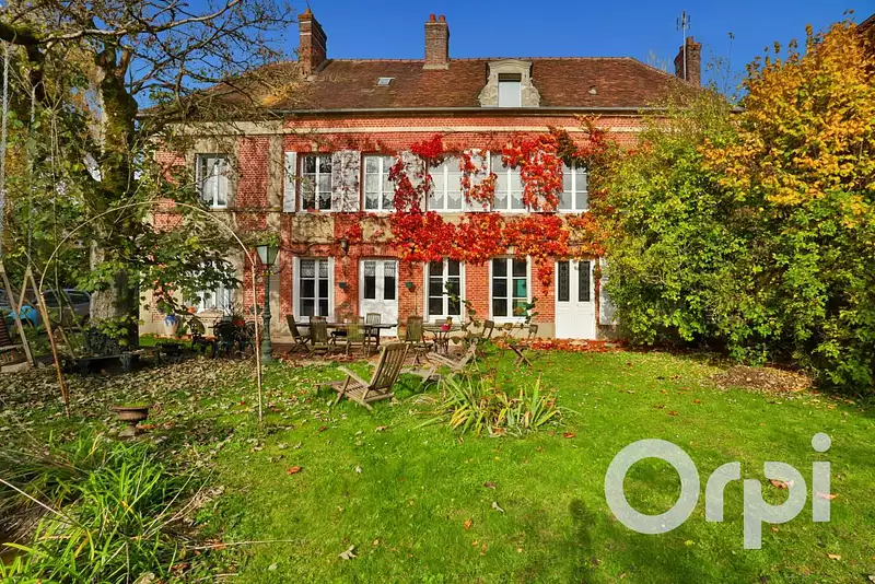 10kms de Chaumont en Vexin, magnifique maison de Maître avec beaucoup de caractère offrant: Hall d'entrée, cuisine aménagée et équipée, salle à manger avec cheminée, salon avec cheminée, 1 chambre avec cheminée, wc, 1er étage: Palier, 3 belles chambres dont 1 suite parentale avec salle de bains avec wc et dressing, salle de bains avec wc, 2ème étage : 1 grande salle de jeux de 63m² avec salle de bains et wc, sous sol avec cave et chaufferie, chauffage central fuel, dépendance avec garage et plusieurs remises (71m²), le tout sur un beau jardin de 3367m².