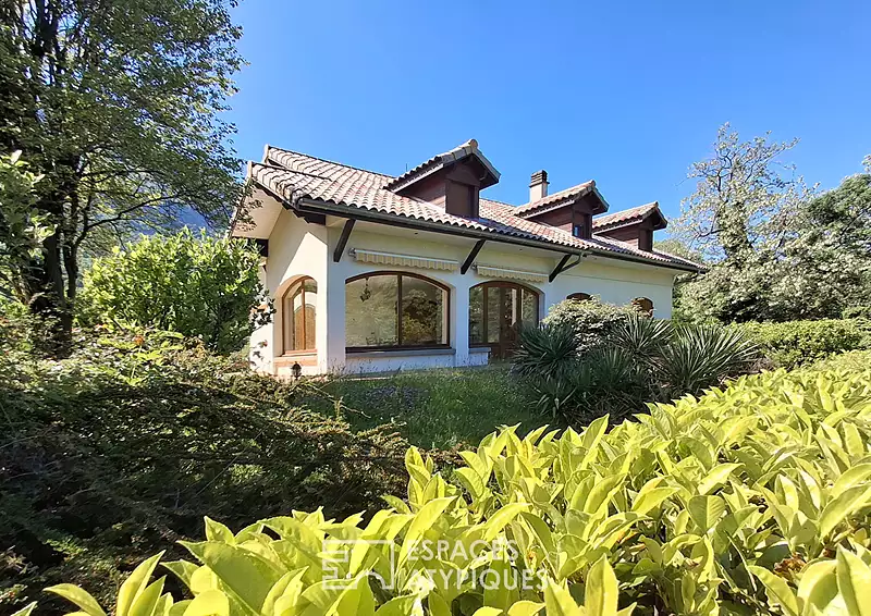 A Sassenage, sur les hauteurs de la commune, cette villa contemporaine de 305 m² utiles offre un cadre de vie privilégié, au coeur d'un environnement verdoyant avec vue sur les massifs environnants. Entièrement repensée pour conjuguer esthétisme et fonctionnalité, elle se déploie sur trois niveaux et propose des volumes généreux ainsi qu'une belle luminosité dans chacune de ses pièces. En rez-de-jardin, les vastes espaces de vie sont baignés de lumière grâce aux grandes ouvertures tournées vers la nature. L'agencement fluide permet une circulation harmonieuse entre les différentes zones du quotidien. Les matériaux choisis et la rénovation de standing apportent confort et sobriété. Deux chambres dont une avec salle d'eau et WC et des toilettes indépendants terminent ce niveau. Au dernier niveau, deux autres chambres dont une avec salle d'eau, WC et dressing côtoient une salle de bains et des sanitaires. L'ensemble offre un espace nuit intimiste et chaleureux. L'extérieur, soigneusement paysagé, prolonge les pièces de vie sur un jardin arboré et fleuri. Nichée dans un cadre naturel préservé, la propriété bénéficie d'une vue imprenable sur les falaises et forêts environnantes, véritable tableau vivant au fil des saisons. L'allée pavée, les escaliers en pierre et les haies soignées accentuent le charme de cette maison aux lignes élégantes; Taxe foncière : 4 147 euros CLASSE ENERGIE : D / CLASSE CLIMAT : D. Montant moyen estimé des dépenses annuelles d'énergie pour un usage standard, établi à partir des prix de l'énergie de l'année 2021,2022 et 2023 : entre 4 320 euros et 5 930 euros. Les informations sur les risques auxquels ce bien est exposé sont disponibles sur le site Géorisques : www.georisques.gouv.fr Contact : Véronique MADORE - 06 78 94 62 77
