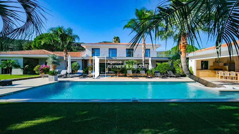 Agence REYNIER & ASSOCIÉS vous présente une villa de prestige, située au cœur du Plan de la Tour, dans une voie privée. Une villa d'architecture contemporaine (2020), sise dans un jardin paysagé de 2.000 m2, avec 272 m2 habitables, ouverts sur une piscine chauffée, qu’agrémente un pool house.