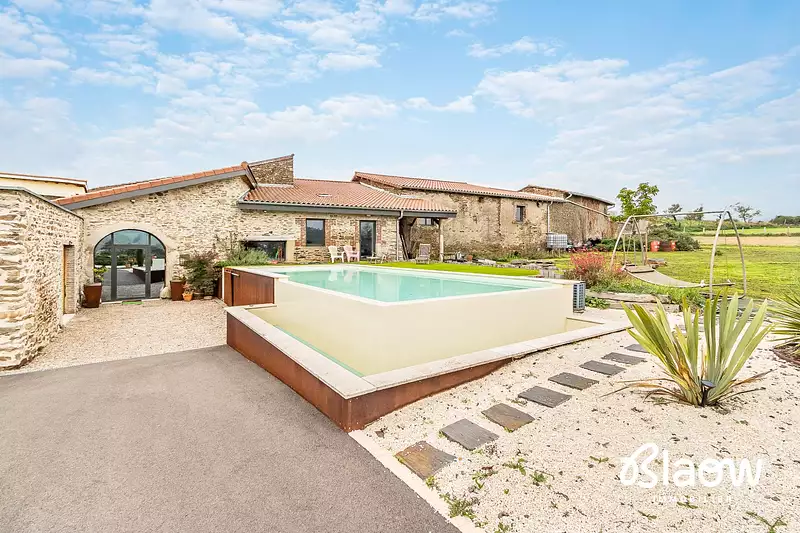 Découvrez cette magnifique ferme rénovée en 2020, alliant charme rustique et luxe moderne. Avec ses 272 m² habitables, cette propriété offre un espace de vie généreux et élégant. Le séjour de 41 m² est idéal pour des moments conviviaux, tandis que les 4 chambres spacieuses garantissent confort et intimité. La cuisine américaine aménagée et équipée est un véritable atout pour les amateurs de gastronomie.