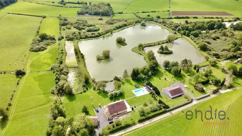 EXCLUSIVITÉ - MAISON 8 PIÈCES AVEC PISCINE ET ÉTANG À ARPENANS (70200) Située au calme, dans un environnement verdoyant, découvrez cette maison familiale de 8 pièces offrant une surface habitable d'environ 275 m², implantée sur un vaste terrain de 61 486 m², agrémenté d'un grand étang privatif, idéal pour les amateurs de nature et de tranquillité. Au rez-de-chaussée, une entrée de 10 m² dessert un salon/séjour lumineux de 35 m² ouvrant sur une véranda de 30 m². Vous trouverez également une cuisine aménagée et équipée de 15 m², trois chambres de 17 m², 11 m² et 18 m², une salle de bains de 10 m², un WC séparé de 1 m², deux buanderies de 6 m² et 11 m², ainsi qu'un garage de 18 m². À l'étage, la maison dispose de trois chambres spacieuses de 18 m², 20 m² et 28 m², d'une salle d'eau de 8 m² et d'un couloir de 13 m² offrant un bel espace de circulation. L'ensemble bénéficie d'un excellent niveau de confort grâce à une climatisation réversible installée dans la maison. À l'extérieur, un espace piscine, une grande terrasse et un grand étang paysager offrent un cadre de vie paisible et harmonieux, propice à la détente. Le jardin arboré assure une intimité totale, sans aucun vis-à-vis. Côté stationnement, la propriété comprend deux garages et deux box, offrant de nombreuses possibilités de rangement. Cette maison se situe dans un secteur calme et recherché, idéal pour une famille ou pour ceux qui recherchent un environnement naturel d'exception, à proximité des commodités. Son prix de vente est de 1 250 000 €. Le prix net est de 1 207 729 €. Les honoraires sont à la charge de l'acquéreur. Votre agence immobilière vous invite à découvrir toutes les originalités de cette maison à vendre en prenant RDV avec l'un de nos négociateurs immobilier. Contactez votre conseiller Endie Immobilier : Thibault KIEHL - EI - 06 83 74 82 23 - Agent commercial indépendant Ville du greffe : VESOUL RSAC N° 949 662 084 - Le barème de nos honoraires est disponible sur (réf. 030104746) (Les informations sur les risques auxquels ce bien est exposé sont disponibles sur le site Géorisques : http://www.georisques.gouv.fr)
