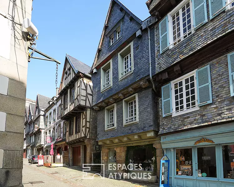 Exclusivité Espaces Atypiques A la croisée de l'histoire et de la rentabilité, cette propriété atypique, déjà partiellement louée, constitue une rare opportunité d'investissement immobilier patrimonial. Composée d'un triplex, de deux studios indépendants et d'un local commercial, elle offre un revenu locatif immédiat, dans un cadre architectural exceptionnel, en plein centre historique de Morlaix. Cette remarquable maison à pans de bois dite Pondalez incarne avec éclat le charme de l'architecture locale. Nichée entre bâtisses séculaires et ruelles pittoresques, elle dévoile une façade en ardoise, un rez-de-chaussée en pierre et de gracieux encorbellements, autant de marqueurs d'un riche passé. Son environnement unique en fait un refuge d'exception pour les amateurs d'histoire et d'authenticité. La bâtisse abrite un triplex de 148,76 m² (surface Carrez), actuellement loué en meublé via un bail d'un an, avec entrée indépendante. Ce logement généreux génère un revenu mensuel intéressant, tout en préservant le charme de l'ancien. Dès le premier étage, le voyage temporel commence : hauteur sous plafond impressionnante, poutres ornées de peintures d'époque, pierres apparentes, charpente en chêne, pans de bois en croix? Autant de détails architecturaux qui confèrent à cet espace une atmosphère singulière. Le salon de 32 m² et la cuisine de 27 m² (surfaces approximatives non Carrez, à titre indicatif) composent un lieu de vie chaleureux et convivial. A l'étage, une vaste chambre lumineuse, une seconde chambre avec salle d'eau privative, une salle de bain et une buanderie forment un espace nuit fonctionnel. Le dernier niveau, niché sous une charpente spectaculaire, accueille deux chambres avec vue carte postale sur les toits de Morlaix et son emblématique viaduc. Au rez-de-chaussée, un local commercial de 58,90 m² (surface Carrez), actuellement loué, constitue un revenu locatif immédiat. Deux studios indépendants viennent compléter l'ensemble : ? L'un, loué en meublé via un bail d'un an, développe 33,68 m² (surface Carrez) ; ? Le second, de 26,04 m² (surface Carrez), reste à finaliser selon les envies ou projets du futur acquéreur. Un local de rangement permet également de stocker des vélos ou du matériel divers. Située à quelques pas des commerces, du marché et des ruelles pavées, cette propriété séduit autant les passionnés de patrimoine que les investisseurs en quête d'un bien atypique. Que ce soit pour une résidence secondaire valorisée, un pied-à-terre de caractère ou un projet locatif sécurisé, l'ensemble immobilier est à vendre dans sa globalité. Caractéristiques techniques ? Pas de copropriété ? Raccordée à la fibre optique et au tout-à-l'égout ? Classe Énergie : C / Classe Climat : C ? Estimation des dépenses annuelles d'énergie : entre 1 480 euros et 2 070 euros ? Plus d'informations sur les risques : www.georisques.gouv.fr Contact : Sandrine Gaveston ? 06 22 26 84 76 RSAC : 852 199 579 BREST Honoraires d'agence : ? 4,76 % TTC à la charge du vendeur . Sandrine GAVESTON (EI) Agent Commercial - Numéro RSAC : 852 199 579 - BREST.