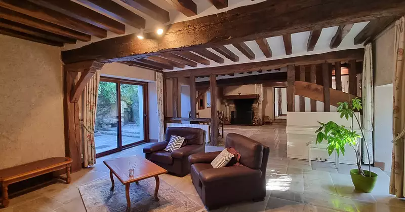 Vous serez séduits par le charme de l'ancien : poutres apparentes, murs en pierres, escalier en bois, vitraux, cheminées d’époque et beaux volumes.