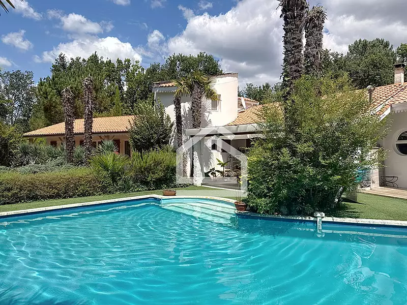 L'Agence Cadre d'Envies vous présente cette agréable maison familiale de 275 m², nichée dans un écrin de verdure à 10min des commerces et commodités de Saint-Médard-en-Jalles. Une propriété qui offre un cadre de vie apaisant, où espace, confort et nature se rencontrent. Dès l'entrée, vous découvrirez un vaste salon de 51 m², baigné de lumière et agrémenté d'une cheminée. La salle à manger indépendante et la cuisine américaine, entièrement rénovée avec goût en 2022, créent un espace de vie convivial. Des baies vitrées offrent une vue imprenable sur le jardin paysager et la piscine, créant une atmosphère de vacances au quotidien. La maison dispose de deux zones de nuit distinctes. La première se compose de quatre chambres spacieuses, dont une suite avec salle d'eau et WC privatifs. La deuxième, véritable cocon, est dédiée à la suite parentale, avec son dressing, sa salle de bain privée et ses toilettes, le tout avec une agréable vue sur le jardin et la piscine. Un couloir-bibliothèque dessert une salle multimédia, parfaite pour les soirées cinéma. A l'étage, un bureau de 16 m² dans la tourelle peut facilement se transformer en chambre d'appoint. A l'extérieur, le terrain de 6 500 m² arboré et paysager abrite une piscine, un étang, un gazebo, trois terrasses, et de beaux arbres. Un cadre parfait pour se détendre et profiter de la vie en plein air. Idéalement située entre Saint-Médard-en-Jalles et Sainte-Hélène, cette propriété bénéficie d'un emplacement à quelques minutes des écoles, commerces, transports ainsi qu'un nouveau pôle santé pluridisciplinaire (5 à 10 minutes en voiture), tout en offrant la tranquillité d'un cadre verdoyant. Un garage, un atelier, une dépendance et un carport avec borne électrique complètent ce bien d'exception. Ne manquez pas cette occasion unique d'acquérir une maison familiale, où nature et bien-être se conjuguent à merveille. Contactez-nous dès aujourd'hui pour organiser une visite ! Prix de vente: 728 000 euros honoraires d'agence inclus dont 4% d'honoraires charge acquéreurs. Contact : Stéphanie BRUN - 06 10 46 81 55 - Agence Cadre d'Envies Saint Médard en Jalles Les informations sur les risques auxquels ce bien est exposé sont disponibles sur le site Géorisques : www.georisques.gouv.fr (4.00 % honoraires TTC à la charge de l'acquéreur.)