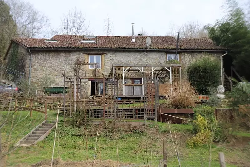 Ancienne ferme du XVIIIᵉ siècle entièrement rénovée, offrant environ 225 m² habitables, comprenant une habitation principale, un studio indépendant et six chalets aménagés en gîtes, le tout sur un terrain paysager de 4 230 m² traversé par un ruisseau.