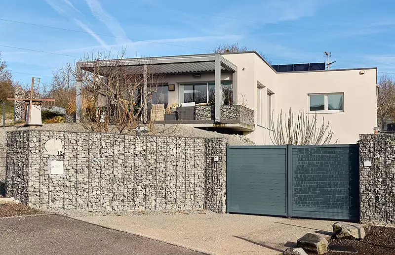 Dans un quartier résidentiel en lisière de forêt à Châtenois-les-Forges, cette villa contemporaine ouverte sur la nature cultive une manière d'habiter fluide, lumineuse et apaisée. Ses lignes pures, son architecture pensée pour un confort immédiat et son accès de plain-pied parfaitement adapté aux mobilités réduites composent un ensemble résolument tourné vers la simplicité du quotidien. Les volumes s'étirent autour de larges ouvertures qui laissent entrer la lumière comme une présence douce, tandis que les matériaux nobles, le toit végétalisé et les solutions écologiques affirmées racontent un habitat durable. Conçue pour se vivre sans contraintes, elle offre un rapport serein entre intérieur et extérieur, où chaque espace semble prolonger le paysage qui l'entoure. Une architecture ouverte et chaleureuse A l'intérieur, la maison déploie des volumes lumineux et respirants, portés par un séjour d'une ampleur rare et de grandes baies vitrées ouvertes sur la nature. La lumière y circule librement, offrant un quotidien fluide où la cuisine contemporaine s'inscrit dans une continuité naturelle. Le plain-pied intégral renforce cette impression de calme et de facilité. L'atmosphère se fait chaleureuse et élégante grâce aux matériaux nobles, au bois présent par touches et aux dispositifs écologiques qui assurent une maison pensée pour durer. Toutes situées en rez-de-chaussée, les chambres prolongent la sérénité des lieux, dont une suite parentale plus intime, tandis que les salles de bain déclinent un confort simple et raffiné. Un extérieur pensé pour la sérénité et le bien-être A l'extérieur, tout est conçu pour offrir un cadre de vie sans contraintes : un terrain aménagé qui entretient une relation apaisée avec la nature, une terrasse en composite qui prolonge les pièces de vie, et une pergola bioclimatique qui module lumière et ambiance selon les saisons. Le jardin paysagé, bordé par la forêt, invite au calme sans nécessiter d'entretien exigeant, donnant à la maison l'allure d'un appartement ouvert où l'extérieur devient un paysage choisi. La dimension bien-être s'affirme avec une piscine intérieure chauffée, véritable espace de détente, et un spa extérieur qui prolonge ces moments de douceur. Même les espaces de stationnement, vastes et intégrés, participent à cette fluidité d'ensemble : ici, tout est simple, accessible et naturellement organisé. Entre nature préservée et vie quotidienne fluide Châtenois-les-Forges offre un cadre où nature et vie pratique se rencontrent avec une rare harmonie. La maison s'inscrit dans un quartier résidentiel paisible, en lisière de forêt, idéal pour les balades comme pour les activités plus sportives. Le bassin de vie, dynamique et bien équipé, propose commerces, services et écoles à proximité, permettant de vivre dans un calme réel sans jamais être isolé. Cette fluidité du quotidien, portée par les infrastructures du territoire et la présence de pôles culturels ou naturels accessibles, répond aussi bien aux rythmes familiaux qu'aux impératifs professionnels. Le Territoire de Belfort, riche de son identité, mêle patrimoine naturel, vie culturelle et activités de plein air : lacs, itinéraires à vélo, espaces de loisirs et événements saisonniers composent un ensemble vivant et accessible. Châtenois-les-Forges incarne cette douceur de vivre essentielle, où la nature reste proche et où chaque saison offre son propre rythme. AVIS DE L'AGENCE Cette villa contemporaine ouverte sur la nature à Châtenois-les-Forges est une proposition rare : un habitat lumineux, durable et parfaitement entretenu, pensé pour un quotidien fluide et sans contraintes. Son architecture épurée, ses volumes généreux, son accès de plain-pied adapté aux mobilités réduites et ses solutions écologiques en font un bien d'une grande cohérence. Elle s'adresse à ceux qui recherchent une maison contemporaine immédiatement habitable, où la simplicité rencontre le confort et où chaque espace prolonge un art de vivre tourné vers la lumière et la nature. Virginie GIRARDOT (EI) Agent Commercial - Numéro RSAC : 935 075 481 - .