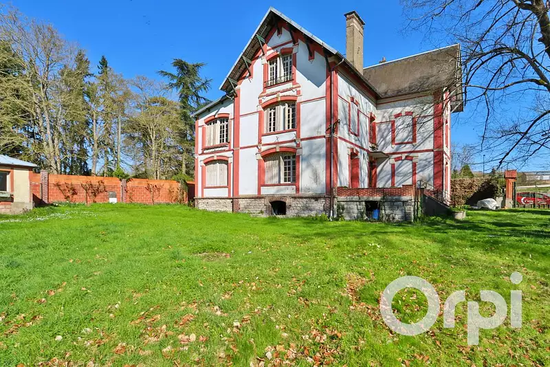 5 min de Gisors, Grande maison bourgeoise bordé par rivière, offrant: Hall d'entrée, salon, cuisine aménagée et équipée, séjour avec cheminée, 1 chambre, wc, 1er étage: Palier, 3 chambres, salle de bains avec wc, 2ème étage: Palier, 4 chambres, cave totale, dépendance, le tout sur un jardin de 9031m² bordé par rivière.