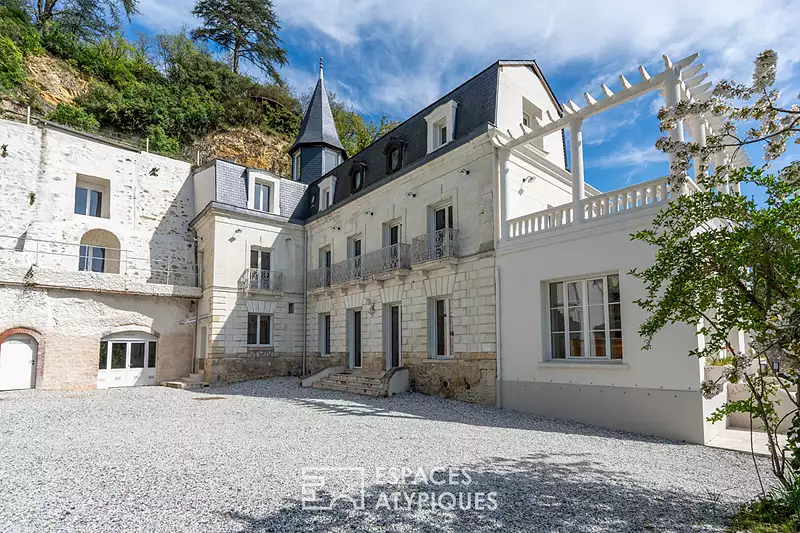 Nichée dans l'un des villages les plus prisés de la rive Nord tourangelle, cette élégante demeure de caractère datant de 1880 développe près de 280 m² habitables et s'ouvre sur un vaste jardin arboré de près de 2 500 m², complété par un coteau privatif de 1 500 m², véritable balcon naturel sur la vallée de la Loire. Restaurée avec exigence, cette propriété conjugue avec brio authenticité architecturale et confort haut de gamme, dans une ambiance raffinée et apaisante. Derrière sa façade ancienne, on découvre une atmosphère chaleureuse et lumineuse, portée par une rénovation soignée où les matériaux nobles dialoguent avec une distribution contemporaine. L'espace de réception, orienté sud-ouest, se compose d'un salon traversant baigné de lumière, d'une salle à manger conviviale et d'une cuisine ouverte aménagée et équipée, pensée comme un lieu de partage et de créativité culinaire. Cette propriété hors normes propose 5 chambres, offrant à chacun un espace de vie intimiste. L'étage parental bénéficie d'une salle d'eau privative, tandis que les autres chambres se répartissent entre 4 salles d'eau supplémentaires et une vaste salle de bain, favorisant confort et intimité pour une vie de famille ou l'accueil d'amis. Le jardin invite à la détente dans un cadre bucolique. Une piscine troglodyte, creusée dans la pierre, offre une expérience rare, entre fraîcheur minérale et sérénité absolue. Le jacuzzi, quant à lui, prolonge cette parenthèse bien-être, été comme hiver. A quelques pas des commerces et des meilleures tables de Rochecorbon, dans un environnement calme et verdoyant, cette maison bénéficie d'un emplacement de choix, à seulement 10 minutes de Tours centre et de la gare TGV. Un compromis idéal entre douceur de vivre et connexion urbaine. CLASSE ÉNERGIE : A / CLASSE CLIMAT : A Montant moyen estimé des dépenses annuelles d'énergie pour un usage standard, établi à partir des prix de l'énergie de l'année 2021, 2022 et 2023 : entre 1020 euros et 1430 euros par an Contact (EI): Julie 06 31 35 22 95 Agent commercial immatriculée au RSAC de Tours n°2021AC00065. Les honoraires sont à la charge du vendeur. Les informations sur les risques auxquels ce bien est exposé sont disponibles sur le site Géorisques pour les zones concernées: www.georisques.gouv.fr Julie RIVIERE (EI) Agent Commercial - Numéro RSAC : - .