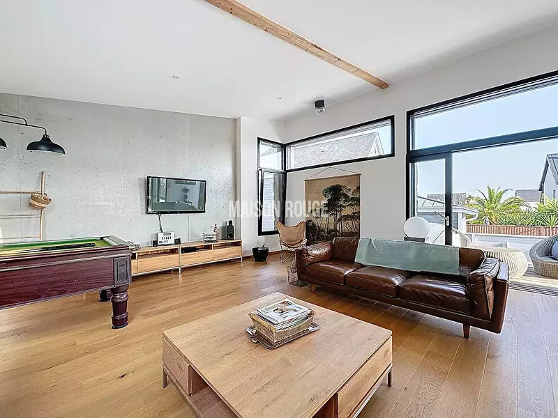 L'agence Maison Rouge de Paramé vous propose de venir visiter cette très jolie et vaste maison d'architecte construite en béton banché et pierres maçonnées, couverte en zinc . Une maison avec une réelle signature, baignée de lumière offrant de vrais espaces de vie conviviaux et une conception atypique. Vous recherchez une maison qui soit unique? Alors venez visiter celle-ci. Elle bénéficie en plus d'un emplacement très sympa, à pied des plages et du petit bourg très prisé de Rothéneuf, renseignements et photos complémentaires sur demande Prix FAI : 1 199 000 euros dont 4.26 % honoraires TTC à la charge de l'acquéreur. Anne BAILLEHAICHE (EI) Agent Commercial - Numéro RSAC : 422 541 169 - SAINT MALO.