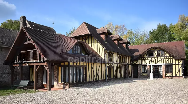 Cette demeure est composée d'une vaste et spacieuse cuisine aménagée avec cheminée ancienne et poutres apparentes, une salle avec cheminée foyer fermé, ourlée d'une lumineuse Mezzanine en bois massif, une grande salle de bains avec baignoire, douche et double vasques, jouxtant une splendide chambre avec cheminée foyer ouvert et baie vitrée. Deux escaliers en bois massif desservent le 1er étage. Cette belle normande propose 6 chambres spacieuses et lumineuses ( bibliothèque, bureau...), 1 WC.
