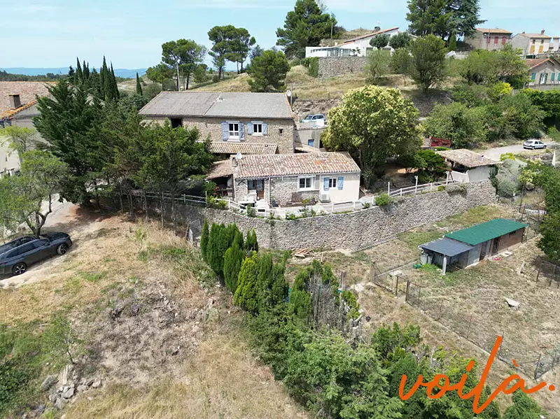Réf : Roche , votre agence VOILA IMMOBILIER vous propose à vendre ce bel ensemble en pierres du pays situé à l'entrée des Corbières à 10 minutes de Carcassonne. Le tout situé dans un petit village paisible à quelques encablures du Lac de la Cavayère. Idéal pour gîtes ou/ chambres d'hôtes ou encore activité commerciale. D'une surface totale de +-560m2 au total il se trouve sur un terrain de 3480m2. La bâtisse principale en pierres du pays comprend - un espace (commercial) avec bar, coin cuisine, sanitaires d'une surface de +-137m2, une cuisine d'été, une terrasse - un appartement F3 de +-80m2 avec séjour, cuisine, deux chambres, une salle d'eau, une terrasse (actuellement sous bail jusqu'au?) - une remise avec grande porte d'accès d'une surface de +-65m2 - espace parking La maison T3 de +-60m2 a été complètement rénovée en 1995 et comprend : séjour, cuisine équipée, une chambre, un bureau avec placards, une salle d'eau, un wc, une terrasse - Climatisation réversible et insert dans le séjour. Plusieurs dépendances, terrasses, terrains viennent compléter cette belle propriété. La configuration des lieux vous offre une multitude d'occupations possible : Gîtes, établissement CHR, profession libérale, maison de vacances... A venir visiter pour s'imprégner de l'âme des lieux et découvrir le potentiel ! Visite virtuelle disponible sur demande Les informations sur les risques auxquels ce bien est exposé sont disponibles sur le site Géorisques : www.georisques.gouv.fr Le prix indiqué comprend les honoraires de négociation, ces honoraires sont à la charge exclusive du vendeur. Camille Maurette, Directrice, immatriculé au RSAC de Carcassonne sous le numéro 90464305300021 - carte professionnelle n° CPI11012021000000008