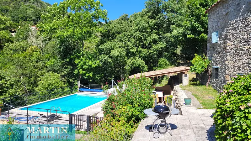 Cette splendide propriété de 360 m2 environ composée de 2 mas en pierres , 2 garages, dépendances et belle piscine sur 42 hectares de terrain dans un très bel environnement se situe à moins de 10 mn du village d' Arles sur tech. L'habitation principale de 290 m2 environ est aménagée sur 2 niveaux avec au Rdc une belle et spacieuse pièce à vivre avec accès à une grande terrasse avec grande cheminée à foyer ouvert , d'un salon avec cheminée, cuisine équipée avec accès belle terrasse, une chambre avec salle de bains et au 1/2 étage d'un bureau très spacieux avec mezzanine et à l'étage 4 chambres avec 2 salles de bains . Le 2ème mas d'environ 75 m2 est composé d'une salle à manger avec terrasse et cuisine équipée , 1 chambre, une salle de bains et une pièce atelier . La propriété bénéficie d'une belle piscine 11m x 5m chauffée avec cuisine d'été et local technique et 2 garages (40 et 30 m2) . Le terrain s'étend sur 42 hectares avec de nombreuses prairies , une belle exposition et une vue panoramique, une rivière parcourt ce lieu privilégié. Le cadre naturel exceptionnel de ces 2 mas en pierres avec dépendances est un environnement parfait pour une activité gites.