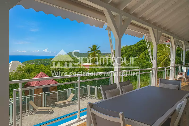 Terrasse: Une immense terrasse de 56 m2 offrant un cadre idyllique pour vos repas et apéritifs face au coucher de soleil sur l'horizon caribéen.