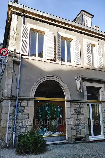 Maison d'habitation en plein centre-ville comprenant au rez-de-chaussée une grande pièce de vie qui était un ancien commerce. Au premier étage, une cuisine, salle à manger, quatre chambres et une salle de bain. Au deuxième étage un grand salon de plus de 70m². Le bien comporte également une cave, un porche pouvant abriter une voiture et une grange sur un terrain d'environ 300 m².