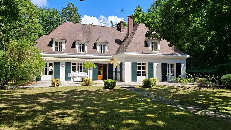 Hall d'entrée, vaste réception avec boiseries et grande hauteur sous plafond, cuisine ouvrant sur une terrasse, suite parentale se composant d'une grande chambre, d'un bureau, d'un dressing et d'une salle de bains. A l'étage : palier desservant 5 chambres, 2 salles de bains et une salle d'eau. Sous sol total avec buanderie, grand garage et cave à vin MATHIEU HUMBERT (EI) Agent Commercial - Numéro RSAC : - .