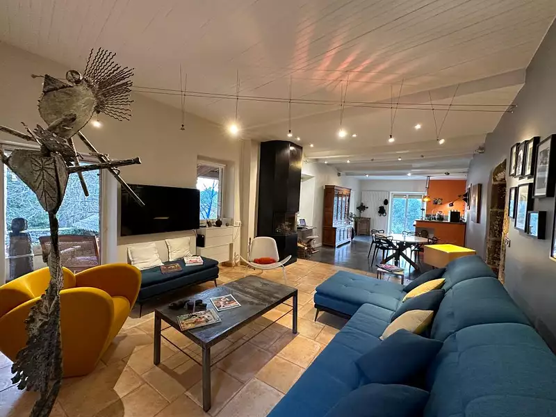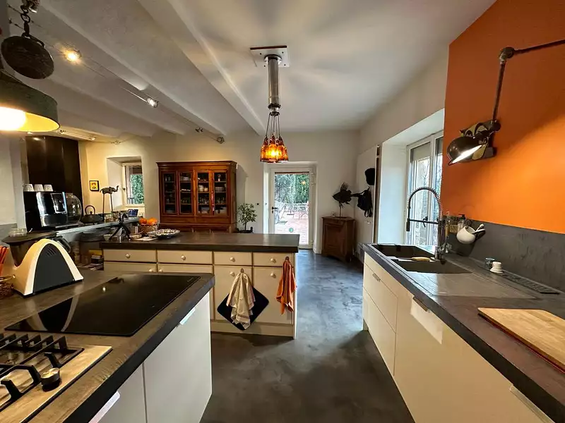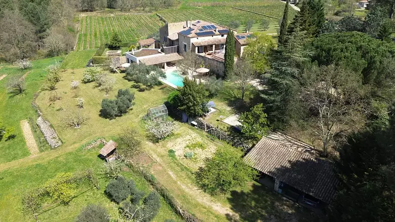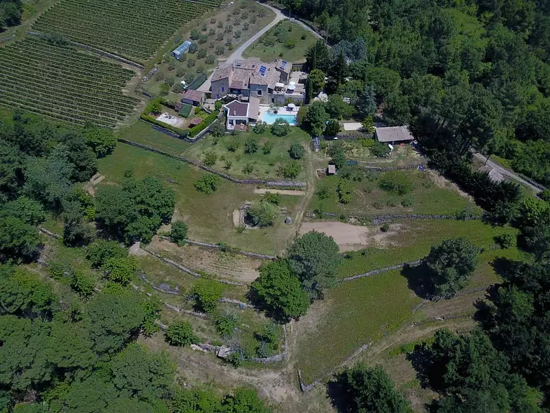 En rdc : Entrée donnant sur une belle cour intérieure, une grande salle voutée d'environ 55 m², une cuisine d'été donnant sur l'espace piscine, une pièce avec SPA, deux grandes chambres indépendantes avec salle d'eau WC, un bureau, une cave - chaufferie - buanderie et un atelier. A l'étage : une grande terrasse, en partie couverte bénéficiant d'une vue panoramique. L'habitation principale propose un grand séjour salon cuisine équipée d'environ 51 m² avec arrière cuisine, 3 chambres dont une avec salle d'eau et WC privatif, une salle d'eau et un WC indépendant. Au deuxième étage : Une chambre avec salle de bain WC, un grand bureau mansardé et une salle de jeux. Le tout sur environ 2.5 Ha de terrain arboré avec grande dépendance d'environ 60 m², Le tout en parfait état.