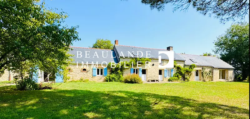 Beaulande Immobilier vous présente une propriété de caractère à Saint-Lyphard (44410) - 281 m² habitables. 7 chambres. Parc arboré de 12 590 m² Située à seulement 15 minutes de Guérande, des plages de La Baule et de Mesquer, cette superbe propriété en pierre du XIXe siècle se déploie dans un environnement naturel privilégié, au calme, en lisière du parc régional de Brière. Cette ancienne métairie développe environ 281 m² habitables, pour une surface au sol de 326 m², sur un terrain clos, arboré de plus de 12 000 m². Le charme de la pierre, des poutres, des tomettes et des cheminées anciennes s'allie ici à des volumes généreux et une ambiance chaleureuse. La maison propose dix pièces bien distribuées. Au rez-de-chaussée, vous trouverez une grande cuisine indépendante avec cheminée, un premier salon intime et authentique, deux chambres de plain-pied avec salle d'eau privative, une troisième chambre, un second salon très lumineux pouvant faire office de salle de jeux ou bureau, une salle d'eau complémentaire, une buanderie et une chaufferie. L'étage accueille quatre chambres supplémentaires, une salle d'eau et un palier qui pourra être aménagé en coin lecture ou espace enfants. A l'extérieur, le parc paysager soigneusement entretenu offre un cadre bucolique et vivant, avec un four à pain en parfait état de fonctionnement, une dépendance, un atelier, un garage et un carport. Une partie du terrain est constructible et peut permettre l'ajout d'une piscine, voir un projet de division. Cette propriété séduira une clientèle sensible à l'authenticité, souhaitant accueillir famille et amis dans un environnement naturel ou développer un projet d'accueil touristique, d'atelier ou de réception. La maison bénéficie d'une toiture récente et d'un très bon diagnostic énergétique classé D, ce qui reste rare pour une bâtisse de cette époque. La localisation est idéale. A seulement quatre minutes du centre de Saint-Lyphard avec ses commerces et services, treize minutes de Guérande, seize minutes de la gare TGV de La Baule et vingt minutes des plages de Quimiac. (4.00 % honoraires TTC à la charge de l'acquéreur.)