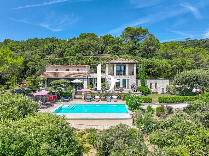 Vente exclusive au coeur de la Vallée de la Cèze, 30kms d'Uzès. Au calme, avec une vue panoramique sur les hauteurs d'un des plus beau village pittoresque de France, La Roque Sur Cèze... Un village médiéval qui s'est construit sur un piton rocheux en surplomb de la Cèze qu'enjambe un vieux pont à douze arches. Dominé par les vestiges d'un ancien château et sa chapelle romane, le village aux calades pentues et maisons de pierres blondes à génoises offre une vue imprenable sur les cascades du Sautadet, un site naturel exceptionnel qui ajoute à l'attractivité du lieu. L'accés à la Propriété s'effectue par deux entrées indépendantes dont une avec un portail automatisé avec piliers en pierre de Beaulieu et une autre avec un confortable parking privatif pour les véhicules. Une exceptionnelle Demeure contemporaine (2014) qui a été habillée en pierre d'orgnac avec en complément des piliers en pierre de Beaulieu, offrant des matériaux de qualité et de bonne facture. Un confortable terrain attenant d'environ 7000m² trés joliment paysagé, arboré, agencé de petits murets en pierre avec terrain de boules et arrosage automatique. Un jardin agrémenté d'un joyau aquatique à débordement (10 5m) chauffée avec une pompe à chaleur bénéficiant d'une vue imprenable sur la Vallée... Une surface habitable d'environ 280m² avec de beaux volumes. De plain pied, un hall d'entrée desservant une spectaculaire et lumineuse pièce à vivre avec charpente apparente d'environ 90m² avec une cheminée insert de 1m15 de largeur et une cuisine ouverte équipée et meublée Mobalpa, le tout donnant sur diverses terrasses à l'extérieur. De même niveau, un cellier, deux chambres en suite avec chacune douche italienne et toilettes séparées. A l'étage, deux chambres en suite avec avec chacune également douche italienne et toilettes, l'ensemble desservant deux terrasses solarium dont une couverte avec "une vue à couper le souffle" sur la campagne environnante... Côté pratique, un grand garage attenant d'environ 40m² avec portail automatisé. Double vitrage anti-intrusion en aluminium anthracite avec volets traditionnels en bois. Un chauffage au sol par pompe à chaleur avec plancher rafraichissant sur les deux niveaux. Portes intérieures en chênes massif. Récupérateurs des eaux de pluie avec citerne de 5000litres avec pompe, le tout en connection aevc les eaux sanitaires de la maison. La proximité de sites touristiques, de restaurants et de magnifiques lieux de baignades dans les Cascades du Saudatet et de la rivière la Cèze. Un réseau balisé de chemins de randonnées vous permettra de découvrir diverses randonnées pédestres ou VTT... Vous recherchez une belle résidence au soleil ? Ne cherchez plus et laissez vous séduire par cette chaleureuse et conviviale Propriété... Votre conseiller Julien BOTELLA (0678945908). Une vente exclusive sélectionnée par Botella et fils immobilier à Barjac. 1.450.000 euros honoraires d'agence inclus dont 3,60 % TTC à la charge de l'Acquéreur, prix hors honoraires de 1.400.000 euros. Réf. 2654
