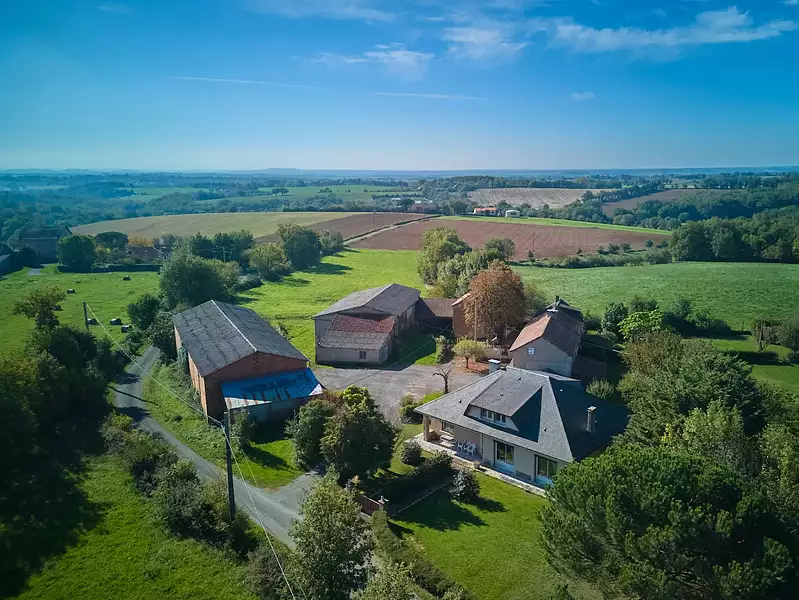 L'ensemble est doté de dépendances: une immense grange/étable avec des citernes d'eau, hangar, garage et une deuxième grange sur un terrain de près d'un hectare.