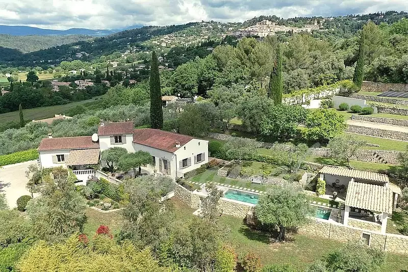 En situation dominante avec une vue panoramique sur la vallée, belle villa entièrement rénovée de 283 m² environ comprenant: au rez-de-chaussée, entrée, un séjour avec cheminée, accès terrasse couverte, une cuisine équipée avec cellier, bureau, une chambre maitre avec deux salles d’eau et dressing/bureau. A l’étage, une chambre spacieuse avec salle d’eau. Au rez-de-jardin, un appartement comprenant un séjour avec cuisine ouverte équipée, une chambre et une salle d’eau. Une salle de sport avec sauna. Buanderie. Piscine chauffée avec pool house. Trois abris voiture, terrain de boule. Panneaux solaires, alarme et caméras extérieures, connexion internet avec la fibre optique et Starlink. Terrain de 4400 m² complanté d’oliviers. Belles prestations.