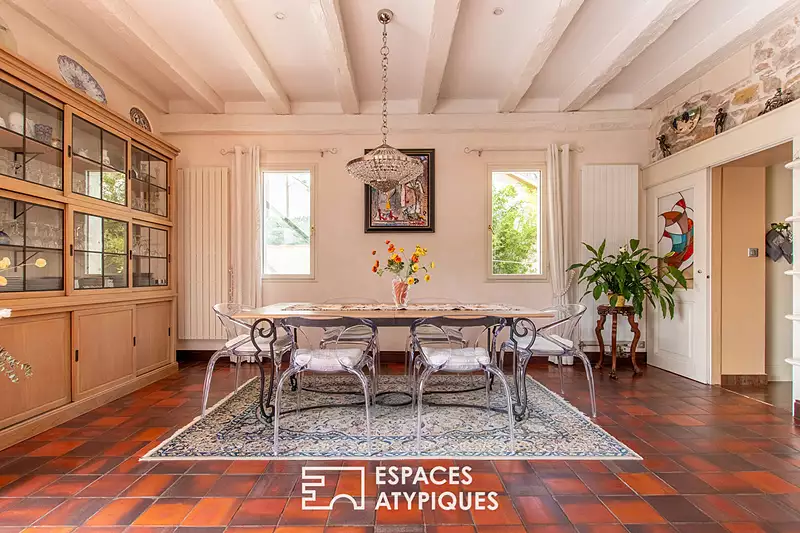 Située au coeur du quartier recherché de la Rudelière aux Sables d'Olonne, cette propriété familiale déploie 284m² habitables sur une parcelle intime de 517 m², entièrement à l'abri des regards. Derrière la façade discrète, cette maison révèle un caractère résolument singulier. Depuis la rue, rien ne laisse deviner les volumes généreux ni la spectaculaire piscine installée comme sur un rooftop, offrant un véritable esprit de villa de vacances. Chaque espace extérieur est pensé pour profiter pleinement de la lumière et de la sérénité du lieu. L'organisation intérieure se déploie sur deux niveaux. L'entrée s'effectue autant par le rez-de-chaussée que par la terrasse à l'étage, idéale pour accueillir famille et amis. Le rez-de-chaussée propose deux chambres, un bureau, une salle d'eau et une salle de cinéma. A l'étage, la vaste pièce de vie avec cheminée s'ouvre sur la terrasse ensoleillée avec la piscine suspendue et se prolonge harmonieusement vers la cuisine semi-indépendante, idéale pour conjuguer convivialité et fonctionnalité. Deux chambres, dont une suite parentale, ainsi qu'une salle d'eau complètent ce niveau. Un jardin d'hiver baigné de lumière, parfait pour un bureau ou pour les amateurs de plantes, apporte une touche singulière. Une buanderie, une cave et deux garages viennent parfaire les prestations, tandis qu'un patio intimiste ferme l'arrière de la maison. Une propriété rare et confidentielle, à deux pas de l'océan, où volumes, piscine en hauteur et espaces de vie multiples composent un lieu de vie unique sur le littoral sablais. Très bien localisée pour rejoindre à pied les commerces de proximité et la plage. CLASSE ÉNERGIE : C - CLASSE CLIMAT : C Montant moyen estimé des dépenses annuelles d'énergie pour un usage standard, établi à partir des prix moyens des énergies indexés sur les années 2021; 2022, 2023 : 1920 euros et 2640 euros Contact (EI) : Nathalie Fayat 07 86 61 96 35 Agent commercial immatriculé au RSAC de LA ROCHE-SUR-YON sous le numéro 2020AC00187. Les honoraires sont à la charge vendeur. Les informations sur les risques auxquels ce bien est exposé sont disponibles sur le site Géorisques : www.georisques.gouv.fr Nathalie FAYAT (EI) Agent Commercial - Numéro RSAC : 887 946 424 - LA ROCHE SUR YON.