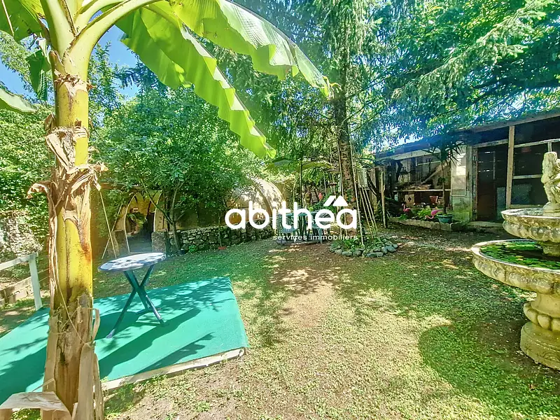 A l'arrière vous y trouverez un grand portail motorisé. Plusieurs dépendances permettent le stationnement de véhicules. L'étage à la belle hauteur permettrait l'aménagement de logements.