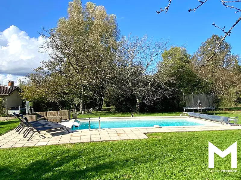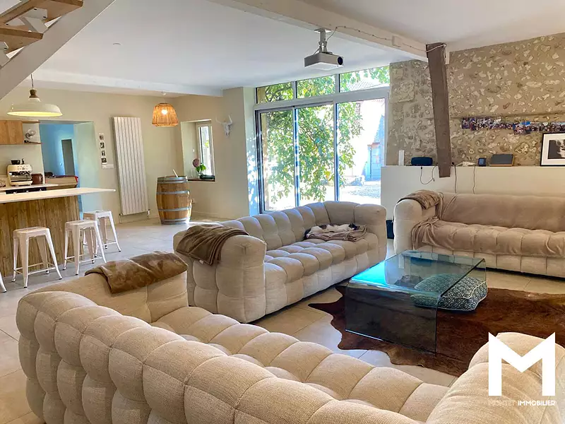 Propriété de Charme - Périgord Blanc Au coeur d'un cadre naturel exceptionnel, venez découvrir ce domaine rénové en pierre, alliant le charme de l'ancien et le confort moderne. Avec son parc d'environ 2,7 Ha cet ancien corps de ferme offre une bâtisse en pierre rénové de 286 m² habitables, une dépendance de 50 m² et des prestations uniques telles qu'un étang privé de 2 000 m², une piscine, et de grandes prairies. Cette propriété se compose au rez-de-chaussée d'une très belle pièce de vie spacieuse et lumineuse, une cuisine américaine entièrement équipée, une salle à manger spacieuse, un salon d'hiver avec poêle à bois, une suite parentale avec salle de bain complète (baignoire et douche) et dressing, une seconde chambre avec salle de bains privative, ainsi que des pièces fonctionnelles (arrière-cuisine, buanderie). A l'étage, un bureau, deux chambres supplémentaires, une salle de bains et un WC indépendant complètent ce niveau. La dépendance de 50 m², entièrement rénovée, est idéale comme maison d'amis et comprend un séjour avec cuisine, une chambre, une salle d'eau et une terrasse avec entrée privative. Une propriété d'exceptions où chaque espace extérieur a été pensé pour sublimer la beauté du paysage environnant. Les informations sur les risques auxquels ce bien est exposé sont disponibles sur le site Géorisques : https://www.georisques.gouv.fr. Montant estimé des dépenses annuelles d'énergie pour un usage standard : entre 1450 euros et 2010 euros par an. Prix moyens des énergies indexés sur les années 2021, 2022, 2023 (abonnement compris).Afficher plus