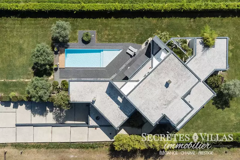 NOUVEAUTE HAUT BOULIAC, CETTE MAGNIFIQUE VILLA CONTEMPORAINE 287M2 ET JOLIE VUE A L'ADRESSE PRIVILEGIEE, offre un cadre de vie idyllique à seulement 13MN DU CENTRE DE BORDEAUX et de la Gare Saint-Jean. Son emplacement en impasse, au calme absolu DANS LA RUE LA PLUS PRESTIGIEUSE de la commune, garantit une tranquillité et une intimité incomparables. Son architecture contemporaine avec son toit-terrasse, arbore un design moderne et élégant, s'intégrant parfaitement dans son environnement Cette villa se développe sur 2 niveaux: Le hall d'entrée spacieux vous mène vers une SUPERBE PIECE DE RECEPTION DE 85M2 idéale pour recevoir, cet espace de vie lumineux et ouvert est sublimé par une cheminée à l'éthanol créant une atmosphère moderne et conviviale. Une CUISINE EQUIPEE HAUT DE GAMME DE 25M2 vient compléter cet espace de vie généreux et comblera les amateurs de gastronomie. Le rez de chaussée offre également des commodités précieuses : un WC avec lave main, un cellier, une buanderie et un bureau idéal pour le télétravail. Un suite parentale spacieuse complète ce niveau dotée d'une élégante SDE à l'italienne, d'un grand dressing et d'un WC indépendant garantissant confort et intimité. L'étage est dédié aux enfants et aux proches, 2 chambres chacune dotée de leur propre dressing et salle d'eau, une chambre d'amis supplémentaire avec salle d'eau et WC indépendant, cet étage assurant un confort optimal pour toute la famille. Le gros atout supplémentaire est le VASTE SOUS/SOL MULTlFONCTIONNEL : UN ENORME GARAGE CARRELE DE 133 m2 offrant un espace de stationnement et de rangement considérable. De plus, une cave à vin ventilée ravira les amateurs. En complément UN GRAND PARKING permet également de garer 8 VEHICULES. LES EXTERIEURS SONT TOUT AUSSI QUALITATIFS VOUS GARANTISSANT PRESTATIONS ET BIEN ETRE: UN BEAU TERRAIN PLAT CLOS ET ARBORE DE 2000M2 offrant une intimité totale, sans vis-à-vis, avec une VUE DEGAGEE sur le chateau, invitant à la détente et aux loisirs en plein air. Une PISCINE 13,5 x 4,5 promettant des moments de fraîcheur inoubliables et ajoutant une touche de luxe à votre quotidien. Des aménagements extérieurs raffinés viennent compléter cet espace convivial: une terrasse en dalles de quartz en partie abritée avec une cuisine d'été barbecue intégré et coin plancha, parfaite pour les repas en extérieure et un pool house. SES PRESTATIONS HAUT DE GAMME : Vide sanitaire, tout à l'égout, huisseries Alu double vitrage, volets centralisés, domotique, chauffage sol électrique et clim réversible dans les chambres, cheminée éthanol, aspiration centralisée, alarme, fibre, store banne électrique, système sono extérieur et extérieur, portail automatique, visiophone... SON CONSTRUCTEUR : MAISONS COLLANTES : une référence sur le secteur pour les maisons contemporaines, gage de qualité pour leurs constructions . SA SITUATION : les avantages d'un environnement paisible avec un accès rapide au centre ville. SES COMMODITES: Ses Commerces de proximité, ses écoles et ses bus pour les établissements scolaires collèges et Lycées publics ou privés de renommée (Lestonnac, Saint Marie de Bastide, Montessori...) TOUS CES ATOUTS FONT DE CETTE VILLA UN BIEN CONVOITE ALLIANT CONFORT, FONCTIONALITE ET EMPLACEMENT PRIVILEGIE Votre havre de paix aux portes de Bordeaux! Les informations sur les risques auxquels ce bien est exposé sont disponibles sur le site Géorisques (4.85 % honoraires TTC à la charge de l'acquéreur.)