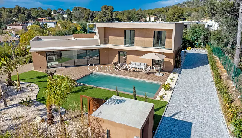 Découvrez la Villa Osmose, une superbe villa contemporaine neuve à l'architecture raffinée, pensée pour offrir un cadre de vie d'exception. Dès l'entrée, vous serez séduit par les volumes généreux et la luminosité omniprésente. Le séjour avec cuisine américaine équipée de 87 m² s'ouvre harmonieusement sur une vaste terrasse et une piscine, créant un véritable espace de vie intérieur/extérieur. Un cellier complète cet espace pour plus de confort. Au rez-de-chaussée, une suite parentale avec dressing et salle d'eau bénéficie également d'un accès direct à la terrasse et à la piscine. A l'étage, trois chambres en suite offrent confort et intimité, chacune ouvrant sur un balcon ou une terrasse avec une vue dégagée. Le niveau R-1 est dédié au bien-être et au loisir avec une cave à vin, une salle de sport, ainsi qu'une cinquième suite idéale pour recevoir. Un garage double et un jardin paysagé viennent parfaire cette propriété aux prestations haut de gamme. Un bien rare alliant design, confort et fonctionnalité, idéal pour une vie paisible et élégante. A découvrir sans tarder ! (5.00 % honoraires TTC à la charge de l'acquéreur.) Mickael MERESSE (EI) Agent Commercial - Numéro RSAC : 811 785 302 - Frejus.