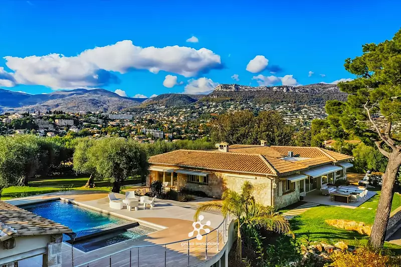 Propriété d'exception de plain-pieds magnifiquement arborée. Piscine, jacuzzi, pool house, terrain de pétanque, vue panoramique, au calme absolu. Sur un terrain arboré de 5108 m2 sans vis-à-vis, cette maison possède 3 grandes chambres, 1 salle de bains, 2 salles d'eau et une pièce de vie de plus de 140 m2 avec cheminée. Un abris voitures, plusieurs places de parking et un garage complètent ce bien rare.