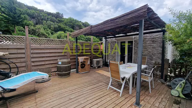 Située juste au dessus du port, maison de 28m2 avec une belle terrasse en bois de 20m2, à l'abris des regards.