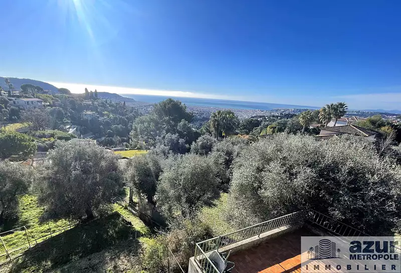 Idéalement située sur la colline résidentielle de Nice Gairaut, maison familiale sur deux niveaux d'une surface habitable actuelle totale de 225 m2, bâtie sur un emplacement unique dominant la mer, les collines et la ville de Nice sur un terrain arboré de 3.200 m2 !