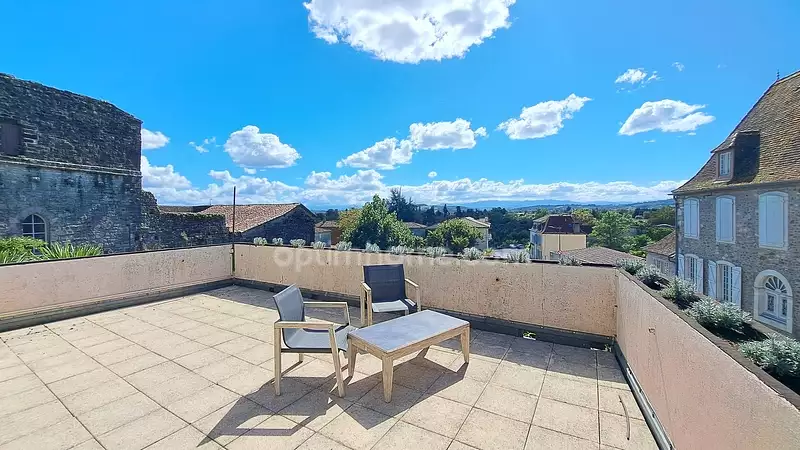 Bâtisse emblématique de la cité médiévale de Sauveterre de 293 m², édifiée au XIIe siècle. Elle dispose d'une vaste salle de séjour de 130 m², ouverte sur la cuisine. Vous pourrez y admirer les murs en pierres apparentes, les meurtrières, la hauteur sous plafond ainsi que son imposante cheminée. En traversant la coursive, nous parvenons à un petit salon/bibliothèque qui s'ouvre sur une terrasse. L'espace nuit se compose de quatre chambres, deux suites parentales dotées de salles de bains, dont une avec une terrasse offrant une vue sur les Pyrénées, une chambre avec salle d'eau, et une autre chambre avec salle d'eau sur le palier.
