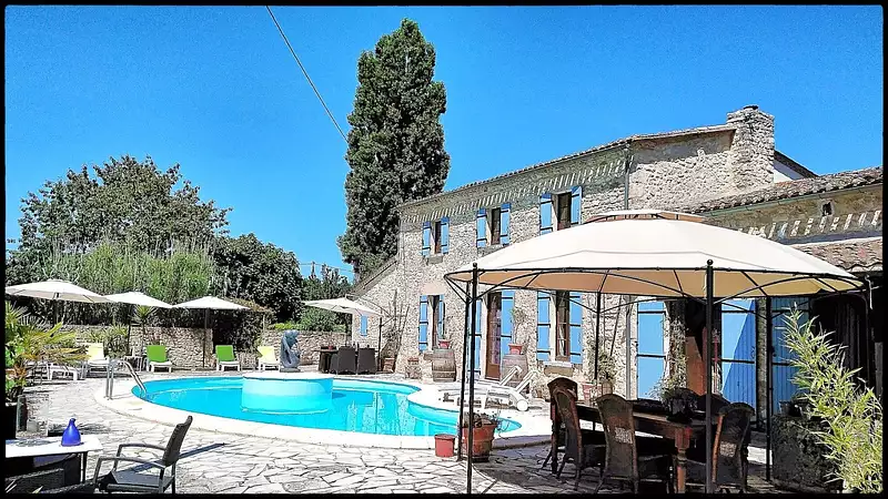 Cette maison de campagne en pierre magnifiquement rénovée, située sur 4500m2, date du 19ème siècle et offre des vues magnifiques sur la campagne et le paysage, tout en étant à seulement 5 minutes de Duras avec ses commerces, bars et restaurants.