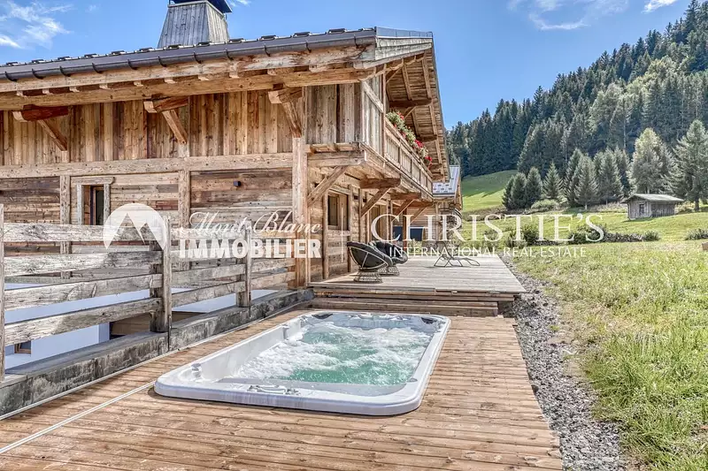 À mi-chemin entre Combloux et Cordon, découvrez ce chalet alpin d’exception récemment construit dans le plus pur style savoyard, mêlant le charme du vieux bois à des finitions contemporaines raffinées. Situé en lisière de forêt, il offre un cadre intime et une vue panoramique sur la chaîne des Aravis.