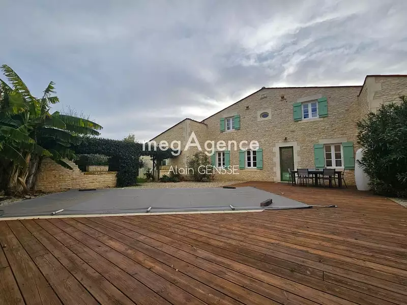 Située à Romegoux à 21mn de Saintes et 25mn de Rochefort cette magnifique charentaise de 295m² saura vous séduire.