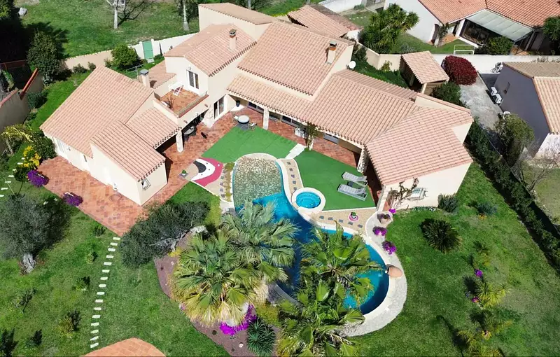 Villa traditionnelle située dans un quartier prisé et très recherché... au calme dans une impasse! La maison climatisée de 296 m2 offre des prestations de qualité, de grands espaces de vie intérieur et extérieur, cuisine de 26.5 m2 et buanderie attenante (11.6 m2). La piscine type 'lagon' bénéficie d'un ensoleillement permanent plein sud! Côté nuit, la maison dispose de 4 chambres dont 2 suites, 1 sdb, 1 salle d'eau, et un bureau. Pour reçevoir en toute intimité, la maison indépendante (45 m2) type t2/ mezzanine est très confortable et entièrement équipée! Le parc arboré de 1832 m2 est sans vis à vis avec de multiples essences, forage, arrosage automatique... Un garage de 72 m2 permet du rangement ainsi que des dépendances type 'casot' et 'pool house', solarium! à visiter sans tarder , unique à la vente!!!