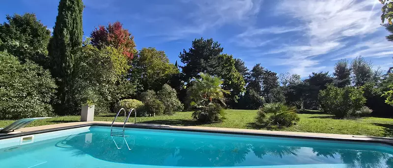 TOULOUSE dans un agréable quartier avec commerces et commodités, Villa d'architecte d'environ 296 ² sur plus de 3000 m² de terrain avec piscine sans vis à vis.