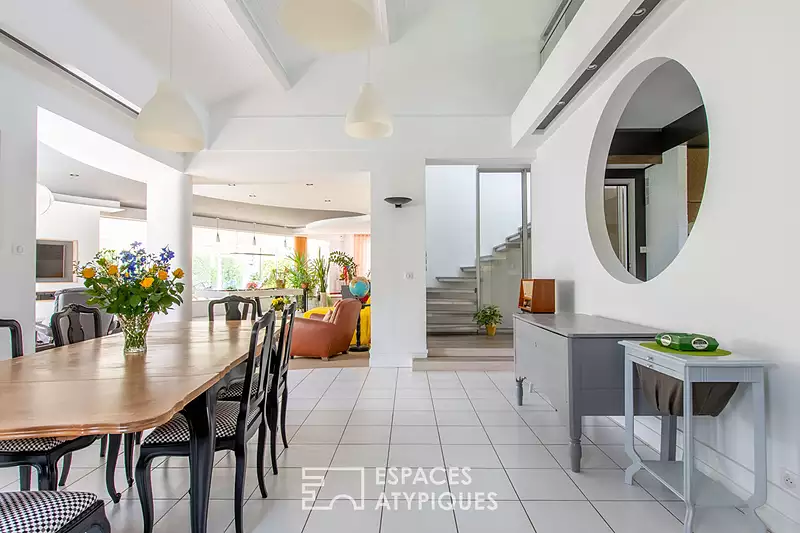 Idéalement située dans un quartier calme et résidentiel de Chambray-lès-Tours, cette magnifique propriété déploie environ 300 m² de surface habitable sur une parcelle de plus de 1 300 m². Cette maison des années 80 a été entièrement rénovée et sublimée par une extension contemporaine avec piscine intérieure. Elle offre un espace de vie incroyable et unique en son genre de 90 m². Le jardin verdoyant invite à découvrir l'intérieur de la maison. Une belle entrée guide vers la salle de réception, qui est adossée à une élégante cuisine indépendante, offrant une atmosphère aérienne. La cuisine a été réalisée sur mesure avec des matériaux haut de gamme et des finitions raffinées. Le rez-de-chaussée est caractérisé par cette pièce de vie au grand volume et aux lignes courbes, qui lui confère un style aérée et lumineuse. Dans le prolongement, une grande pièce vitrée de 50 m² abrite une piscine avec nage à contre-courant et tous les équipements de confort et de sécurité. Une grande chambre principale de 25 m² avec salle de bains privative ainsi qu'une pièce aménagée en dressing de 20 m² pouvant devenir une chambre et une salle de douche permettent une vie de plain-pied. Un escalier singulier, où le verre et le métal se mêlent subtilement, mène à une spacieuse mezzanine de 22 m² au sol, ainsi qu'à une immense chambre de plus de 40 m² au sol avec sa propre salle d'eau. A cet étage également les grands espaces peuvent laisser place à plusieurs chambres. Le grand sous-sol de la propriété vient compléter cet ensemble, offrant un espace de rangement supplémentaire, du stationnement pour plusieurs véhicules et un bel atelier. Située à seulement 15 minutes de la gare TGV et à 10 minutes de l'autoroute A10, cette maison est également à proximité des commerces et des écoles, ce qui en fait un emplacement idéal pour une vie paisible dans un quartier recherché. Un véritable havre de paix alliant calme et proximité de la ville. CLASSE ÉNERGIE : C / CLASSE CLIMAT C Montant moyen estimé des dépenses annuelles d'énergie pour un usage standard, établi à partir des prix de l'énergie de l'année 2021 : entre 2308 euros et 3122 euros. Contact : (EI) Magali Boudry 07 86 27 07 99 Agent Commercial immatriculé au RSAC de Tours sous le numéro 2021AC00288 Les honoraires sont à la charge du vendeur Les informations sur les risques auxquels ce bien est exposé sont disponibles sur le site Géorisques pour les zones concernées: www.georisques.gouv.fr Magali BOUDRY (EI) Agent Commercial - Numéro RSAC : - .