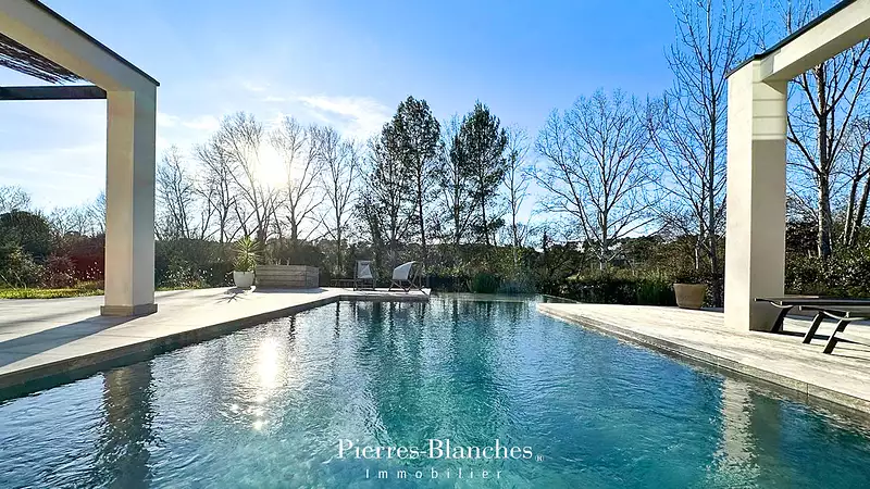 PIERRES-BLANCHES IMMOBILIER - L'EXPRESSION DU LUXE Montpellier - PBI Crush Entre pins d'Alep, vignes et arbres fruitiers, nous vous invitons à découvrir cette commune qui possède une grande partie de l'un des ouvrages d'art majeurs du Languedoc, l'aqueduc, menant l'eau du Lez jusqu'à Montpellier. Cette commune harmonisant tradition et modernité abrite une demeure qui esquisse les contours d'un certain art de vivre. Nichée sur les hauteurs montpelliéraines, cette propriété sublime de 285 m² a été entièrement rénovée en 2022 avec une attention minutieuse portée à chaque détail. Sur un terrain généreusement arboré de 2000 m², elle incarne un équilibre parfait où le savoir-faire rend hommage à l'audace créative. Elle nous présente des espaces lumineux à l'atmosphère élégante dont les matériaux précieux et les textures raffinées dialoguent harmonieusement. Dès nos premiers pas, nous sommes littéralement séduits par cette vision plurielle qui appréhende l'espace tout autant que l'esthétisme décoratif. Une large porte d'entrée s'ouvre vers un univers baigné de lumière naturelle, révélant un espace de vie traversant, pensé comme un écrin d'élégance. Le salon, spacieux et ouvert, prolonge cette harmonie délivrant une sensation inside and out grâce à de larges baies vitrées qui embrassent le jardin. Au cœur de cet open space, la cuisine se positionne en pièce maîtresse. Équipée avec les technologies les plus modernes, elle est magnifiée par une crédence en marbre du Luxembourg, pièce unique importée spécialement pour cette réalisation. Le rez-de-chaussée réserve également deux suites intimistes qui associent confort et exclusivité. Chacune dispose d'une salle de bains ou salle d'eau, pensées comme des havres de paix, où le moindre détail a été conçu pour répondre aux attentes les plus exigeantes. Un escalier design avec garde-corps en vitrage sublime notre ascension vers le premier étage. Les volumes se déploient avec une élégance aérienne jusqu'à une coursive qui surplombe le niveau inférieur. Dans un esprit de loft moderne, la lumière circule librement, nous exposant simultanément une vue saisissante sur l'extérieur et l'intérieur. À cet étage, trois master bedrooms dévoilent leur caractère unique alliant sobriété et raffinement. Alors que chaque ouverture vers l'extérieur encadre les paysages telle une toile tendue sur châssis, une salle de jeux complète cet espace pensé pour la convivialité et la sérénité. Les extérieurs, avec ses longues perspectives, apparaissent comme une invitation à l'évasion. Soigneusement aménagé, le jardin révèle une alternance d'espaces couverts et découverts, où chaque cosy corners a été imaginé pour nous apporter une ambiance chaleureuse et intime. Inspirés des atmosphères balinaises, ces lieux de détente ont été imaginé comme une retraite bucolique pour tous ceux qui auront le privilège de la partager. Le regard se pose sur la piscine aux dimensions généreuses dessinant ses 8 mètres de long dans cet environnement verdoyant où règne l'harmonie. Dans la conception de cette habitation, les espaces clos dans lesquels chacun pourra trouver son intimité alternent avec les pièces à ciel ouvert afin de bénéficier d'une vie inside and out où le soleil méditerranéen a définitivement pris sa place de protagoniste. Le Plus : La propriété dispose d'un double garage avec porte motorisée. Ensemble de techniques de gestion automatisée. Porte d'entrée blindée. À proximité immédiate des établissements scolaires, des centres médicaux, des infrastructures sportives et culturelles. Proche des principaux axes de communication. À 15 minutes de Montpellier. Notre Avis : L'Art de la Matière - Cette propriété n'est pas seulement un lieu de vie, c'est un art de vivre, une ode à la beauté et au confort. Un îlot de bien-être où l'esprit chaleureux et la quête d'émotions se connectent à l'unisson. "Une Vision Authentique et Contemporaine de l'Immobilier de Luxe." Franck Ballester ® TOUTE INSPIRATION, MODIFICATION, REPRODUCTION EST INTERDIT - REGISTERED TRADEMARK Dossier sur références Chrystèle Guigui +33 (0)6 20 77 57 21 Rsac Montpellier 943 839 548