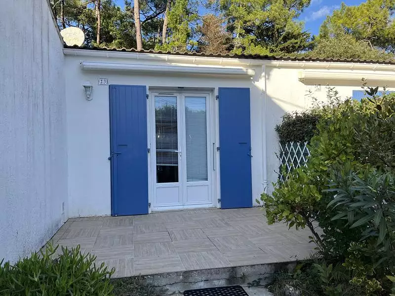 Sur la côte ouest, avec accès privé et direct à la plage, dans un environnement arboré, maison en copropriété composé d'un séjour/cuisine, une chambre avec salle d'eau/wc, possibilité de créer une mezzanine pour un couchage supplémentaire. Une terrasse privative orientée plein sud. Une place de parking et garage à vélos