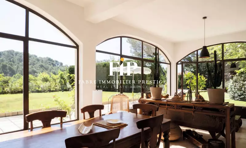 Cette superbe Bastide du XVIIe siècle située à Aix-en-Provence offre un cadre de vie exceptionnel, alliant élégance historique et confort moderne. Nichée dans un parc de 1 800 m2 orné d'arbres centenaires, la propriété bénéficie d'une intimité totale face à une colline boisée classée zone naturelle, à seulement 15 minutes à pied du centre historique de la ville. Cette bastide pourrait très bien convenir non seulement à une destination professionnelle (cabinet médical, notarial, avocats...), ou résidentiel. Nous mettrons à votre disposition des plans pour envisager l' aménagement adéquate. A l'extérieur, un véritable havre de paix vous attend avec une piscine de 11x4m, chauffée par une pompe à chaleur et équipée d'une nage à contre-courant, idéale pour se détendre en toute saison. Un charmant chalet en bois abrite une salle de gym avec un sauna infrarouge, offrant une parenthèse de relaxation au coeur de la nature. A l'intérieur, l'espace de vie de 300 m2 est réparti sur 3 niveaux lumineux et spacieux, où les hauts plafonds de 3,20 m amplifient le sentiment d'espace et de grandeur. Au rez-de-chaussée, un double séjour de plus de 80 m2, agrémenté d'une grande cheminée, s'ouvre sur une terrasse ensoleillée et une orangerie baignée de lumière naturelle. Une cuisine entièrement équipée, un bureau élégant et une salle à manger formelle complètent cet espace de vie convivial. A l'étage, une suite parentale somptueuse de 40 m2 avec dressing et salle d'eau privative offre un confort ultime, tandis que quatre autres chambres spacieuses, chacune avec sa propre salle d'eau, offrent un espace privé pour les invités ou la famille. Le deuxième étage abrite également trois chambres supplémentaires et une salle de bains balnéo pour une détente totale. La propriété est entièrement sécurisée avec deux portails électriques, un garage fermé de 62 m2 et deux places de parking extérieures, offrant une tranquillité d'esprit absolue. De plus, la proximité d'un arrêt de bus à seulement 100 mètres facilite les déplacements vers la gare routière, l'aéroport et les autres villes de la région. Cette demeure de maître, imprégnée d'authenticité et de charme, représente un véritable trésor pour les amateurs d'histoire et de vieilles pierres, offrant un équilibre parfait entre sérénité campagnarde et vie urbaine dynamique à Aix-en-Provence. Prix de vente : 2.590.000 euros Prix net vendeur : 2.500.000 euros Honoraires charge acquéreur: 90.000 euros TTC, soit 3,6% du net vendeur Contact: Marc Fabre 06.11.43.31.31 ou collaborateurs FIP - Fabre Immobilier Prestige Les informations sur les risques auxquels ce bien est exposé sont disponibles sur le site Géorisques https://www.georisques.gouv.fr (3.60 % honoraires TTC à la charge de l'acquéreur.)