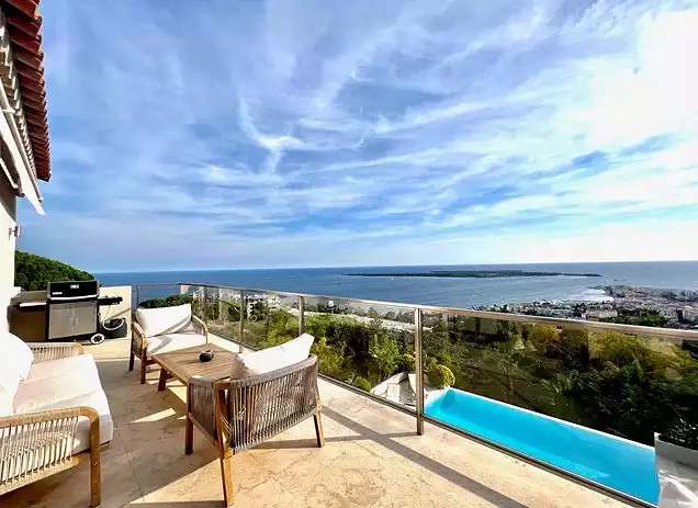 Somptueuse propriété offrant un cadre luxueux et un panorama à couper le souffle. Cette magnifique villa de 300 m2 est nichée dans le célèbre quartier de la Californie, offrant une vue spectaculaire sur la mer méditerranée, et les Iles de Lérins.