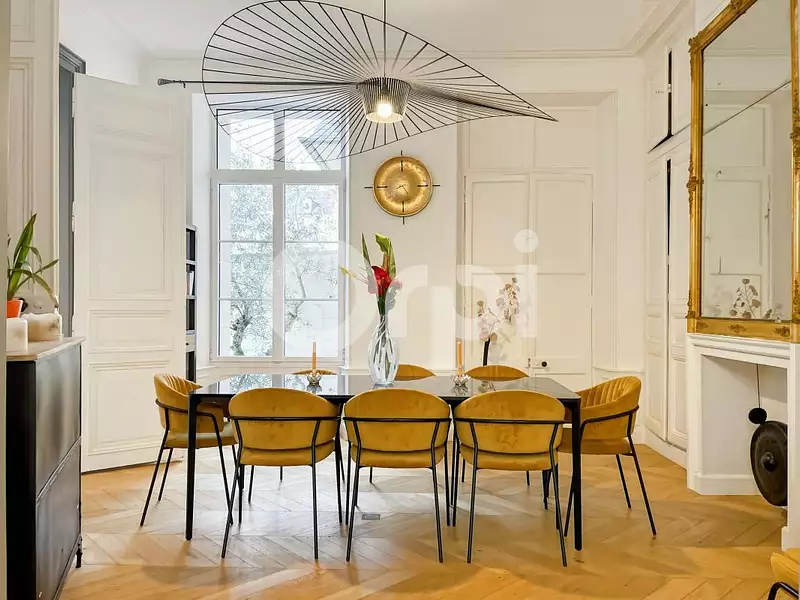 Dès l'entrée, la luminosité et les volumes impressionnent. Le rez-de-chaussée, habillé d'un somptueux parquet en point de Hongrie, offre un vaste salon-salle à manger ainsi qu'une grande cuisine conviviale, aménagée et équipée, avec îlot central en bois massif et accès direct à la terrasse.