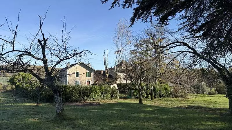 EYMET, corps de ferme en pierre à rénover avec une jolie vue comprenant : entrée, cuisine, séjour, quatre chambres, celliers, caves, arrière cuisine, salles de bains, wc, grenier, dépendances attenantes avec chambres, séjours, salon. Granges, chais, caves, ateliers, ancien four, séchoir en bois, puits sur cinq hectares environ.